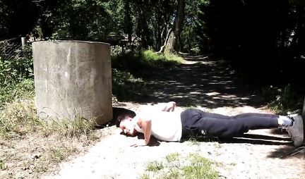 Азиатка в позе раком получает порцию оргазма на природе