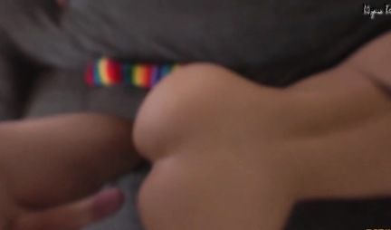 Брюнетка в полосатых гольфах подставляет свою тугую попку для домашнего анала