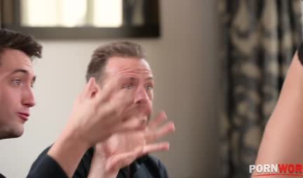 Деловая баба с большими дойками устроила тройничок с коллегами