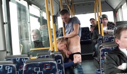 Девушка и ее парень решили на публике заняться сексом посреди полного пассажирами автобуса