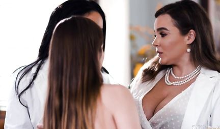 Две грудастые медсестры в белых халатах устроили пациентке групповое лесби порно
