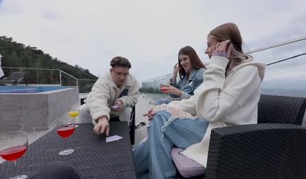 Рыбак рыбака видит издалека, а русский русского за границей видит еще дальше. Вот и эти две русские няшки, решившие познакомиться с соседями, попали на своих соотечественников, которые встретили их как родных, накормили, напоили и предложили сыграть в карты на желание. И пусть в итоге те их как следует отодрали в группе, но видимо таково было желание.