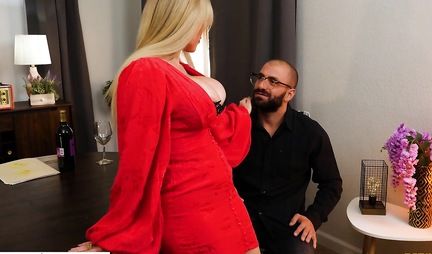Мамка блондинка с тату и торчащими сосками решила насладиться обществом качка