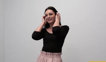 Загрузка плеера...На кастинге стройная брюнетка обнажила прелести и дала раком режиссеру