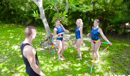 Три красивые и аппетитные девушки весьма неравнодушны к физическим нагрузкам и потому три раза в неделю посещают спортивную секцию. Мало того что там они занимаются спортивной гимнастикой так еще и общаются с Оливером Флинном, который никогда не устает дрючить своих очаровательных подружек в разных позах и преимущественно в групповушке. Ну и похоже этот горячий чувачок не просто факер молодежной команды, а даже и секс-тренер как бы пошло это ни звучало!