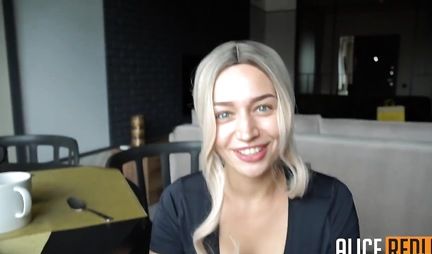 После завтрака блондинка и ее друг снимают откровенное домашнее порно