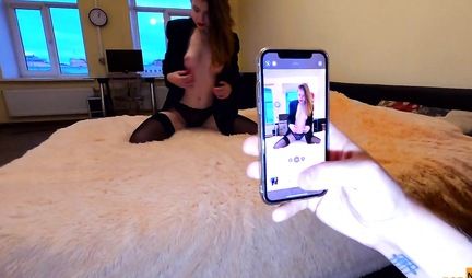 Весьма привлекательная с виду дамочка приехала в славный город Москву из довольно таки глухой провинции ровно три года назад, нашла парня и с той поры не присылала родителям вообще никаких фотографий. Решив покончить в этой порочной практикой, красотка фоткает себя на телефон, но делает это крайне не умело. Попросив сделать снимки сожителя, она так возбуждается позируя перед товарищем, что принимается самые откровенные позы, получая в итоге бурный секс. Интересно, какие именно фото она пошлет родакам - в одежде или без нее?!
