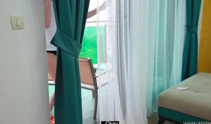 Русская девушка говорит по телефону и сосет член парня перед домашнем порно