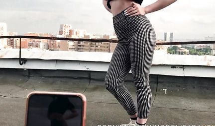 И пусть эта пара не читала про Карлсона, который живет на крыше, но она обожает шарахаться там не менее легендарного героя, а даже пожалуй чуть более. Все потому что именно здесь парочка снимается на телефон, занимается оральным сексом и даже кончает на упругую попку девицы, которая просто создана для секса. Причем не только на высоте.