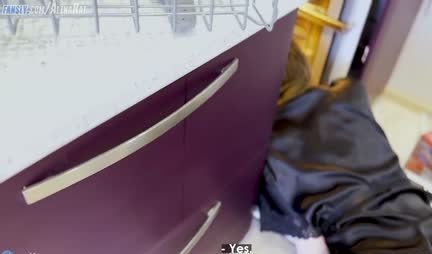 Саша Парадайз лезет не в свои дела через что регулярно и получает по полной программе. Так, сегодня она убирает мусор из посудомоечной машины и конкретно застревает под оной в 01:53. Понимая что самой ей не выбраться, мамашка зовет пасынка в 03:29 и тот почти сразу приходит. Убедившись что та капитально застряла, он снимает с дамочки труселя и начинает задорно дрючить ее в 04:14. Ну и если поначалу Саша Парадайз слегка стремается, то очень скоро даже балдеет, попросив ничего не говорить по этому поводу папане!