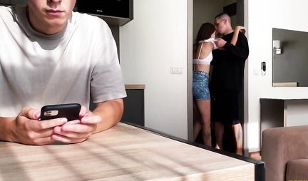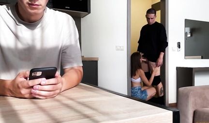 Русская сучка изменяет своему бойфренду прямо у него за спиной
