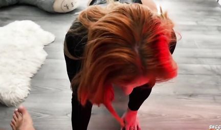 Кожа материал очень универсальный и подходит практически всем. Вот и рыженькая русская чикса Свити Фокс обновляя гардероб на предстоящее лето, надевает кожаные штаны и кожаную же куртку и таки проверяет насколько удобно они снимаются. Так, начав делать минет товарищу, милашка не может не обнажить сладкие дырки между ног - потому что куда же товарищ будет ее драть и причмокивать от удовольствия. Жаль не у всех девушек есть такой классный прикид, иначе все бы были красавицами как на подбор!