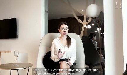 Симпатичная русская девушка хоть и снимается в откровенных фильмах, но заодно имеет диплом психолога и даже практикует. Вот и сегодня к ней в номер гостиницы приходит чувак, которому очень нужна психологическая помощь. У пациента мощнейший стояк и только этой девушка с татуированным кальмаром на жопе под силу без медикаментозных препаратов добиться падения эрекции... просто нужно больше трахаться!