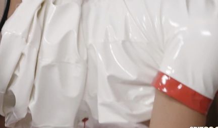 Шаловливая медсестричка в чулках осматривает крепкий член