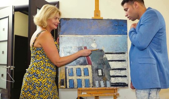 Понятно, что этому русскому студенту, которого занесло в Пражский университет нет дела до современной живописи, да любой другой, когда на улице его ждёт свежее разливное пиво по нормальной цене и вкусовых качеств уровня божественно. Я тут ради зачета по современной живописи, в искусстве не шарю, а вот сквиртануть могу помочь - говорит студент своей не первой свежести, да и не второй - преподавательнице. И что делать бедной учительнице, у которой давно не было секса! Конечно соглашаться, экзамены экзаменами, а член в давно увядшей дырке бывает не часто.