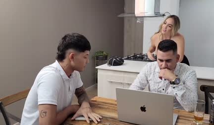 А без сомнения Кортни Лав это самая красивая мачеха, которую ее пасынок видел в своей жизни. Ну так бабенка знает как тот ее любит и если бы не действующий муж милфы, она бы запросто закрутила любовь и сексом с симпатичным пасынком. Но Корни далеко не самая святая в этом семействе. Потому она показывает парню свои прелести втихаря сосет хер, пока глава семейства дрочится за компом на фондовой бирже. Впрочем заниматься сексом с такой ситуации требует недюжинного мужества и беспредельного хладнокровия.