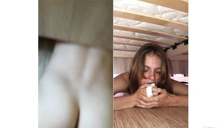 Девушка залезла под кровать и парень трахнул ее секс игрушкой в кремовую киску