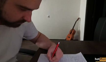 Пасынок у мачехи просто красавец, но вот с учебой у него чуть хуже чем отвратительно. И напрасно красивая бабенка учит с ним английскую грамматику - все мысли хлопца о голой жопе милфы с которой он спит на одной постели. Но вот однажды утром, невзирая на субординацию чувак вставляет возбужденный конец в мокрую дырку леди и классно трахает ее с камшотом. Ну, будем думать что теперь с учебой натурально попрет!