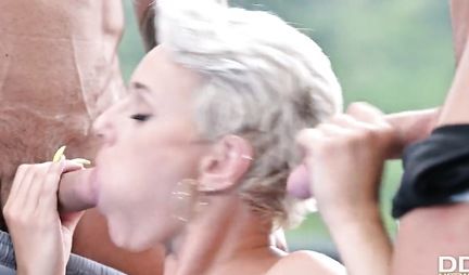 Идея эта определенно не оригинальная, но по большому счету деньги нужны для того чтобы о них не думать. Вот и эта пышная бизнес-вумен с большой грудью и платиновыми волосами теребонькает шмоньку, пока над уборкой ее квартиры работает команда-парней профессионалов из клининговой конторы. Но кто сказал что парни не могут прочистить дырки пожилой дамочки своими членами?! Очень даже могу и таки делают это во время группового порно с двойным проникновением. Вот они какие молодцы!