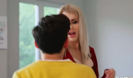 Мамочка блондинка и ее пасынок в спальне занимаются горячим сексом