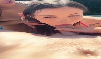 Две весьма симпатичные половозрелые девицы слегка притомились и заказали себе пиццу через курьера. Но когда тот принес им доставку, у подружек даже не нашлось денег на ее оплату. Но все равно девицы рассчитались с курьером, пригласив его к бассейну и сделав минет с окончание в два ротика. А вы бы согласились на подобный расчет, если бы были на месте курьера?... а на месте девушек? В роли курьера доставки - Леха Питерский, он же Маётный.