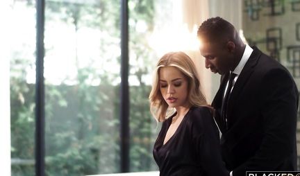Накаченные негры с длинными членами соблазнили молодую блондинку на групповой секс