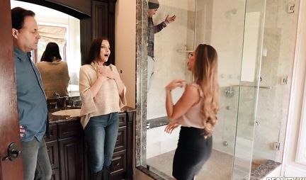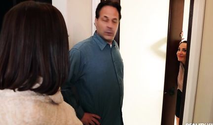 Пока жена осматривала дом, брюнетка залезла на ее мужа и трахнула в спальне