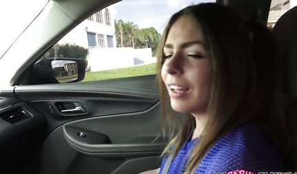 Попытки склеить любую девушку без машины заранее обречены на полнейший провал. Вот потому этот товарищ, пригласив дальнюю знакомую подвести ее до дома, умело разводит милашку на легкий минет, плавно превратившийся в вагинальный секс в салоне и плюс ко всему у девушки на лобке интимная прическа... весьма фривольная!