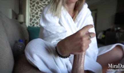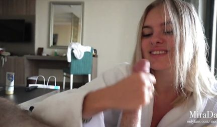 Етить-колотить, - в очередной раз заявляет русская блондинка, когда ее муж призывает ее побаловаться с его членом, благо тот стоит как квартирный вопрос в России. Ну так девушка и рада бы отказаться, но сделать это не так-то просто. Потому она смазывает пенис друга смазкой и дрочит как хочет. Через это у товарища возникает сильное желание и он жарит супругу в догги-стайл и даже кончает, что неудивительно ввиду красоты подруги.