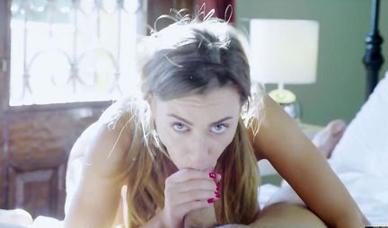 Русская девушка с большими дойками на кровати подставляет киску для вагинала