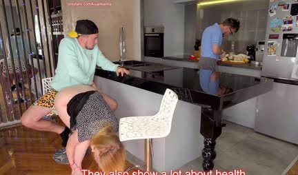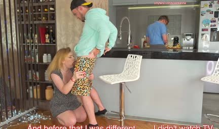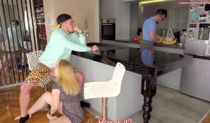 Пока хозяин дома Леша готовит бутерброды для своего друга и женушки, последняя пытается всеми силами трахнуться с первым в 00:42. Ну и пока муженек пересказывает сюжеты из Рент-ТВ, симпатичная супруга в разных позах ублажает общего товарища. Особенно тому нравится как девица сосет ему член в 01:49 и как она отдается в позиции раком в 03:27. Наверное, рогатенький муженек так бы и задевал ими о потолок, но в 08:14 пара любовников совсем попутала берега и тут Леша понял кто по жизни козел, а кто козлиная шлюха!