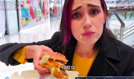 Как ни крути, а минет на рынке секс-услуг реально подешевел и намного. Собственно поэтому к парню в торговом комплексе подходит симпатичная девушка и предлагает сделать минет за купленный бургер. Чувак ничуть не жадный, но бросать деньги на ветер ни разу не привык. Впрочем договор дороже денег и худосочная очаровашка таки вафлит нового знакомого в раздевалке за приобретенную вкусняшку. Интересно, а за кофе с молоком она, наверное, позволит трахнуть себя в попу!