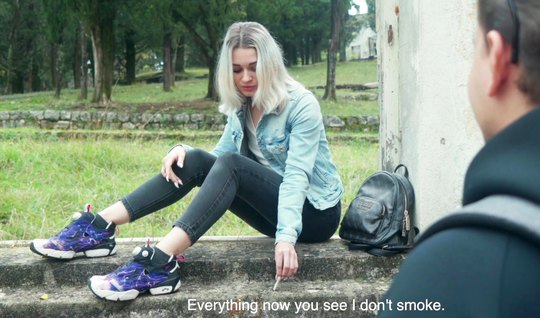 Помните, как в одном из прошлых роликов - девушка студентка прогуливала колледж, курила и была анально наказана инспектором. Так и тут на страже здоровья девушки её однокурсник, который наглым образом шантажирует студентку и предлагает ей обменять поцелуй на молчание. Эх, если бы она была отличница, может быть на этом все и закончилось, но нет. Парню теперь не избежать секса. А вы готовы целоваться с курящей девушкой?
