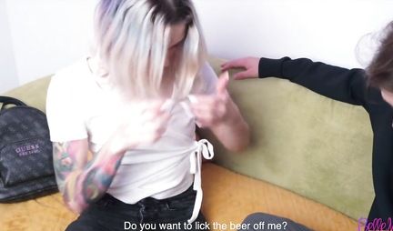 Татуированная русская девушка после свидания готова для секса