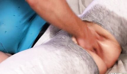 Толстушка во время мастурбации получает сквирт и дрочит член руками
